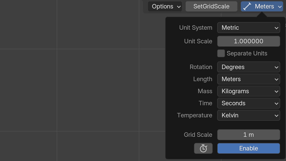Adds a menu to the top right of the 3d viewport that displays the current units and gives you control over the scale of the grid.
